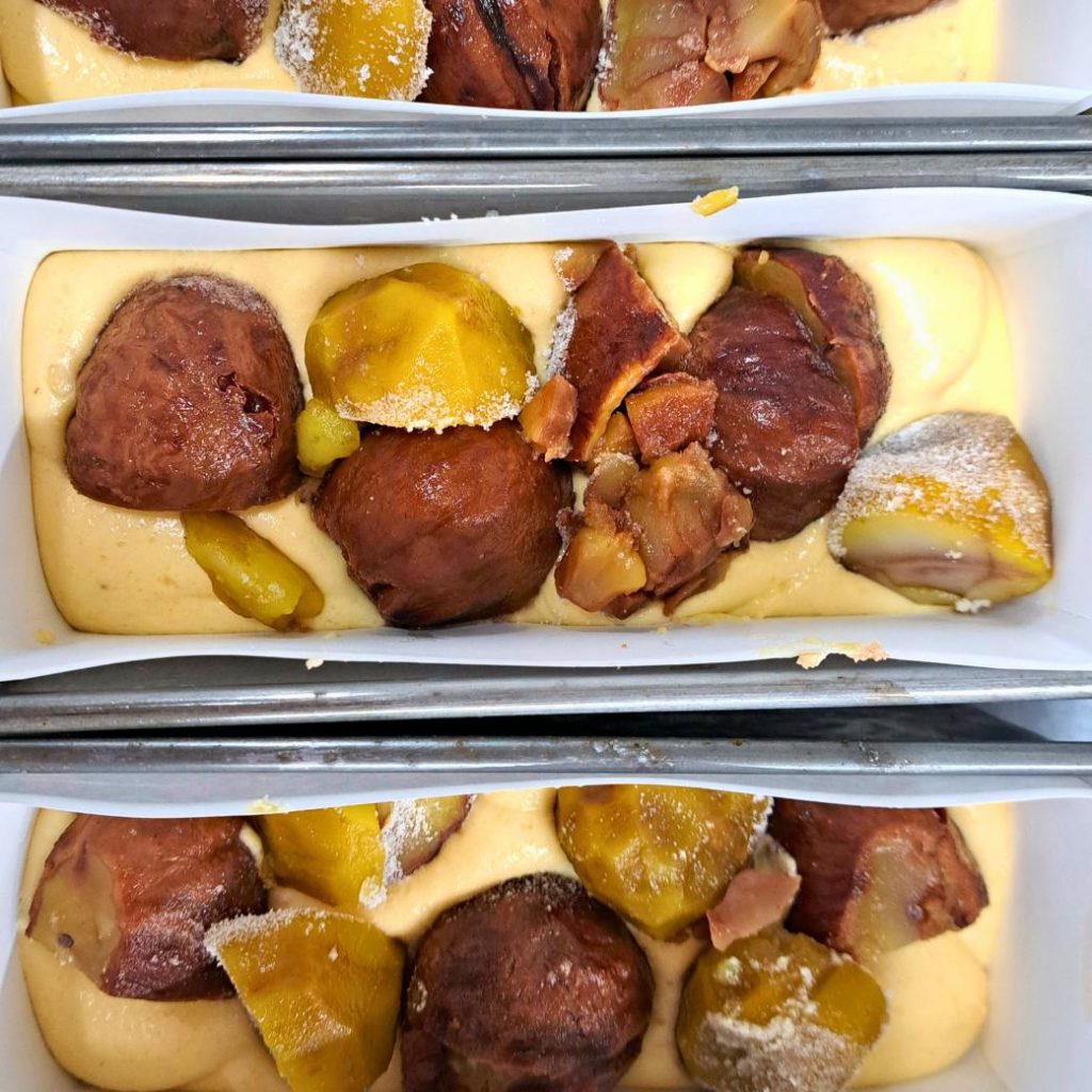 このパウンドケーキは、山口県産・厚保の栗そのもののおいしさを大切にしたくて、