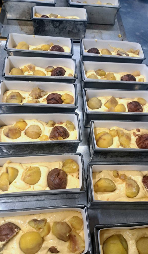 秋の栗仕事で出来上がった、栗たちが生地の中に